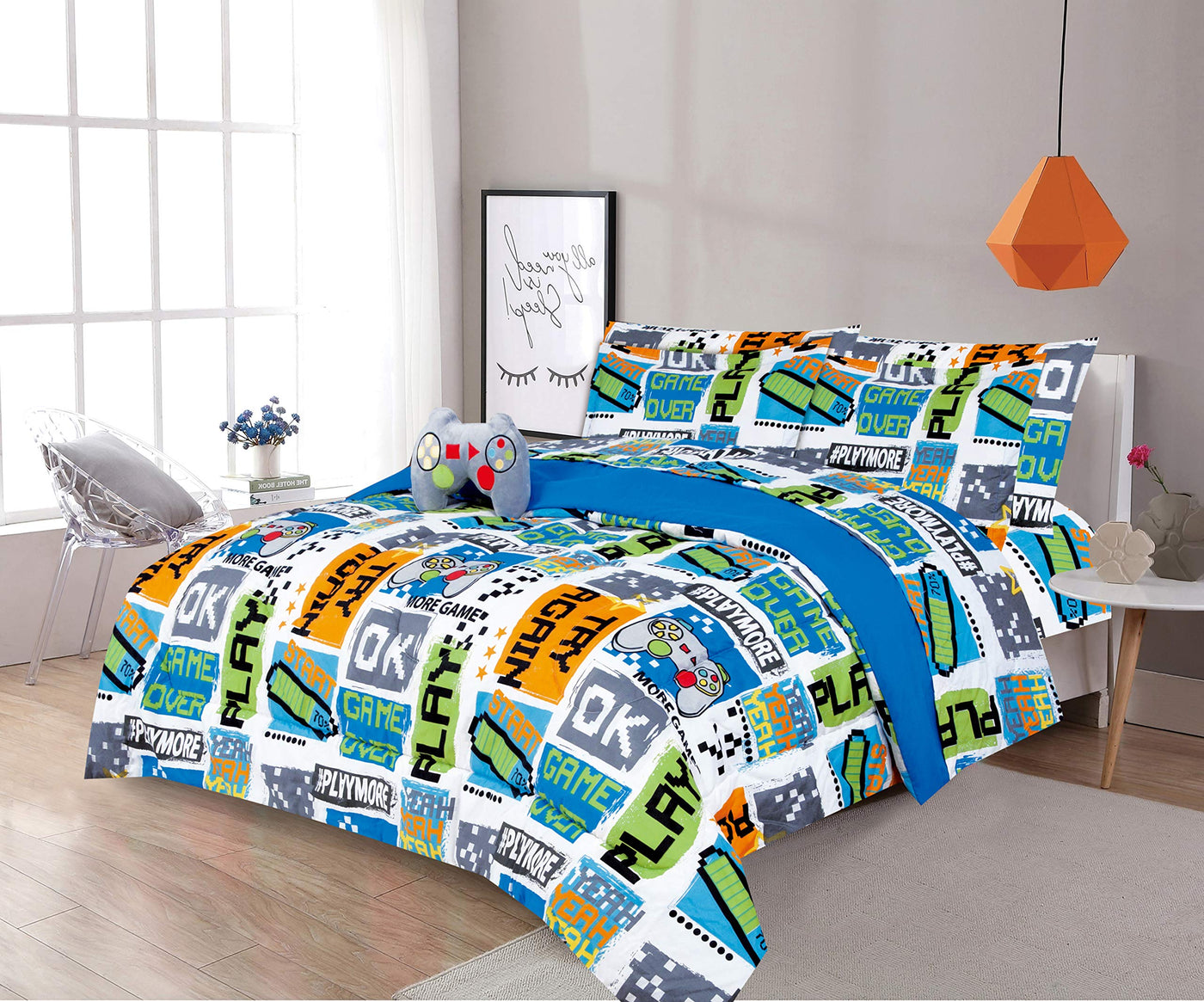 Sapphire Home 3 Piece Gamer Twin Kids Comforter Set - Kids Bedding - Pillow Sham, Decorative Toy Pillow - Toddler Bed Kit, Video