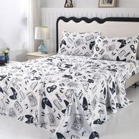 Sdiii 4Pcs Black And White Gamer Bedding Sheet Sets For Boys Girls Teens And Kids, Bed In A Bag Sheet Set Queen Size, Video Game
