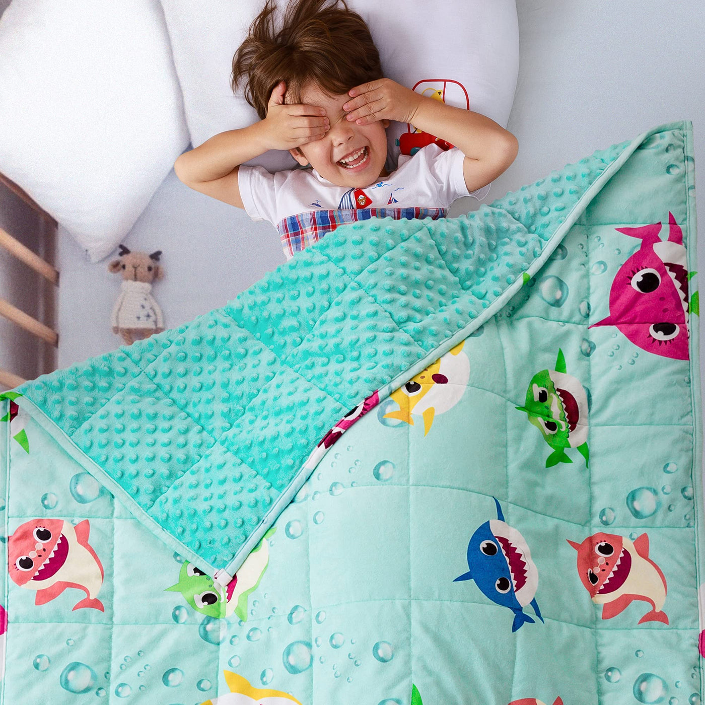 Sivio 5 Lbs Minky Dotted Weighted Blanket For Kids, Super Soft Crystal Velvet With Shark Cartoon Patterns, Reversible Heavy Blan