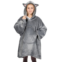 Solaris Cat Wearable Blanket Hoodie For Kids - Warm Soft Gift, Oversized Cozy Sherpa Fleece Sweatshirt Pullover For Teens, Girls