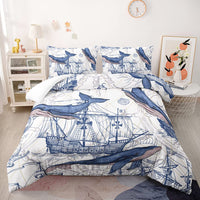 Suncloris Blue Whale Comforter Set, Whale Nautical Sailing Adventure Bedspread For Kids And Adults, Underwater Marine Life Patte