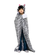 Unicorns & Robots Hooded Blanket For Kids, Wearable Fleece Throw Blanket For Toddler Boys And Girls, Oeko Tex Certified, 3D Hood