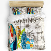 Wanxinfu 3 Piece Duvet Cover Set Queen Size For Adults, Boys, Girls, Kids, Lightweight And Soft Bedding, Summer Surfboard On The