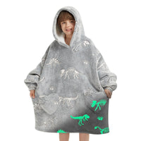 Wearable Blanket Hoodie For Kids Oversized Sherpa Blanket Hoodie For Kids Boys Girls Teens 6-13Yr,Glow In The Dark Dinosaur Foss