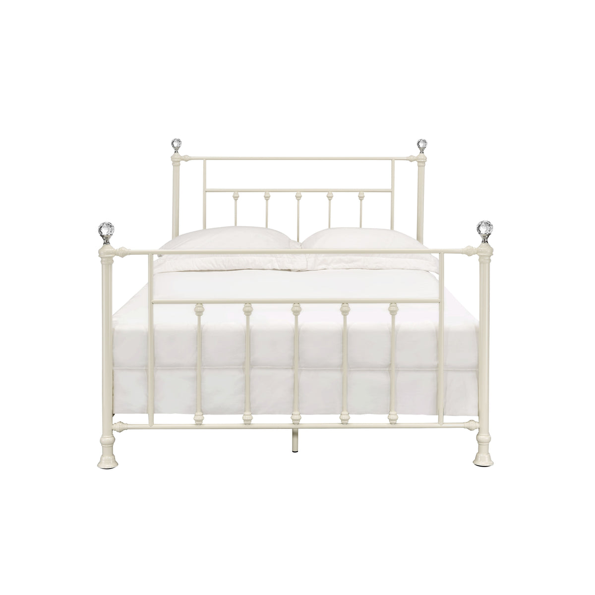 With a versatile design that could pairs beautifully with farmhouse, vintage, and rustic styles. With graceful details such as crystal-like accents on the bedposts and slatted headboard and footboard. This Comet bed is not only visually striking it is also sturdy. The white finish complements existing decor and color schemes.