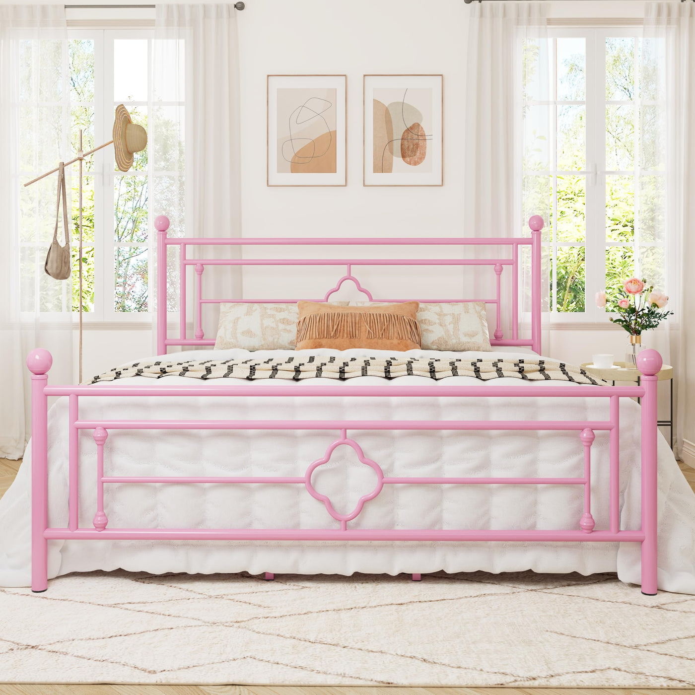 King Size Metal Platform Bed Frame With Victorian Vintage Headboard And Footboard/Mattress Foundation/Under Bed Storage/No Box Spring Needed/Noise-Free/Easy Assembly, Pink