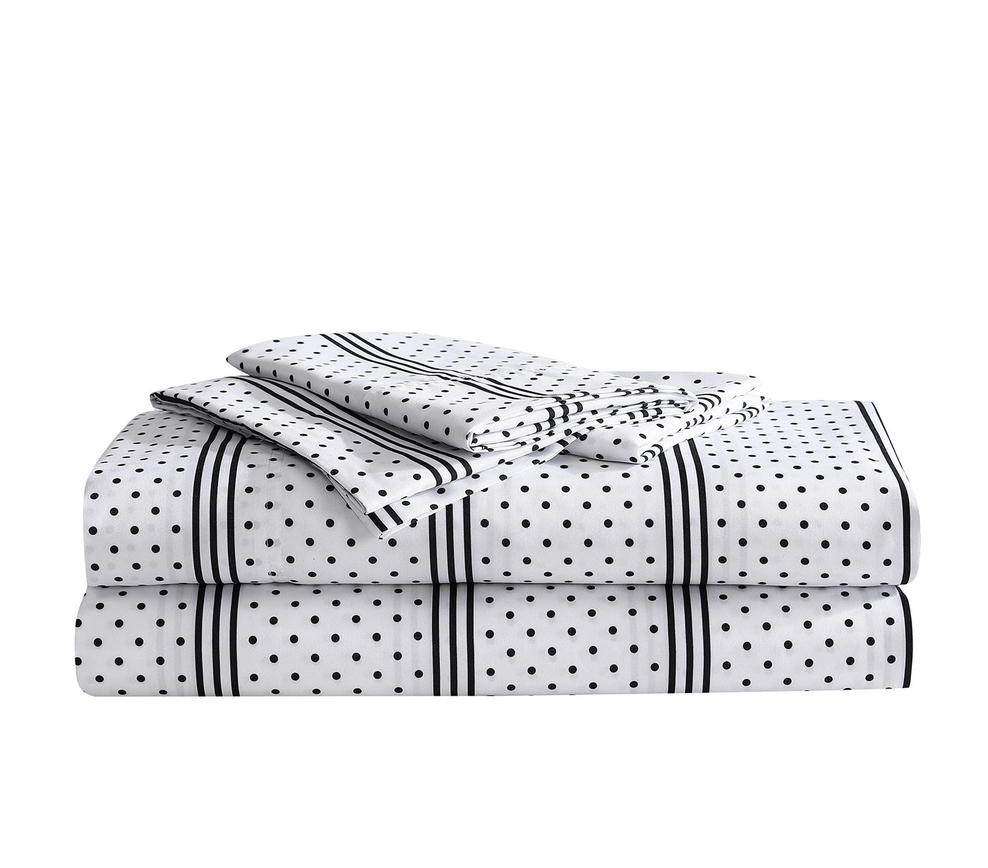 Bring Some Fun Patterning Into Your Bedroom With The Dots And Stripes Sheet Set From Betsey Johnson With Its Bold Black And White Design That Combines Playful Dots With Striping, This Stylish Microfiber Sheet Set Features A Smooth And Super Soft Feel With Wrinkle-Free Properties Perfect For Everyday Use Included Fully Elasticized Fitted Sheet Prevents Slipping From Your Mattress And Ensures A Perfect Fit Set Is Machine Washable For Easy Care