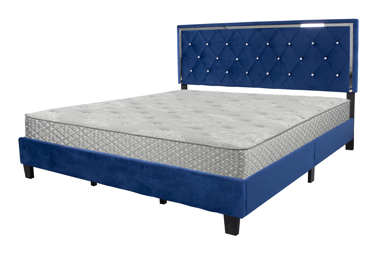 Better Home Products Monica Velvet Upholstered King Platform Bed in Blue