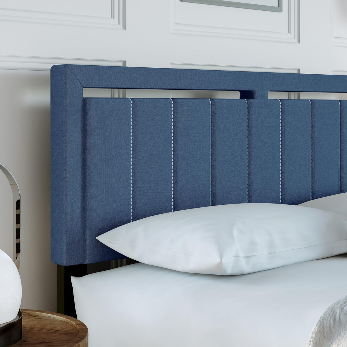 Boyd Sleep Beaumont Upholstered Platform Bed with Headboard, Mattress Foundation with Strong 14 Wood Slat Supports, No Box Spring Required, Blue Linen, Size King
