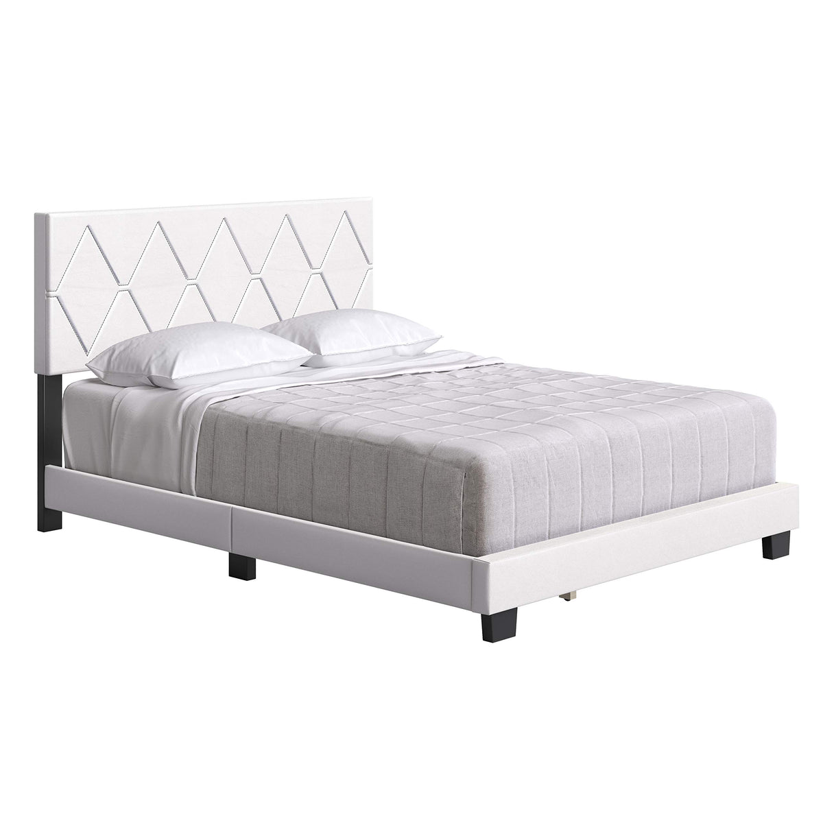 Revamp your bedroom in minutes with the Charlot Faux Leather Platform Bed. This beautiful contemporary faux leather platform bed features diamond stitching detail on the headboard that looks stunning, no matter the setting. Available in white/black stitching or red/white stitching, you’re sure to find a Charlat that’s perfect for you. The versatile, yet timeless design, pairs with any type of decor, no matter the aesthetic. Sturdy and built to last, the Charlat will add a touch of style and class to any master bedroom or guest room for years to come.
