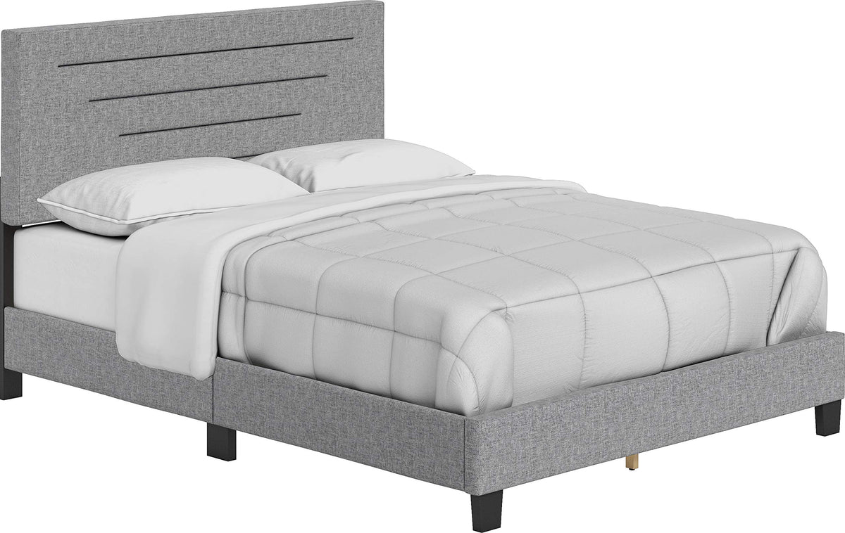 Style your bedroom with the Cordoba Upholstered Linen Platform Bed. This contemporary upholstered platform bed features graduated stitching detail with an architecturally inspired design. Available in two color options, Gray or Charcoal, making it versatile with any decorating style. It's easily assembled and ready in minutes.