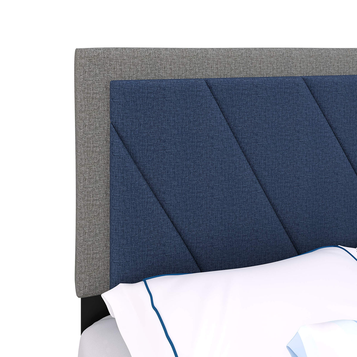 Boyd Sleep Diagonal Upholstered Platform Bed with Headboard and Durable Mattress Foundation with Strong 4 Wood Slat Supports, Box Spring Required: King, Blue/Gray