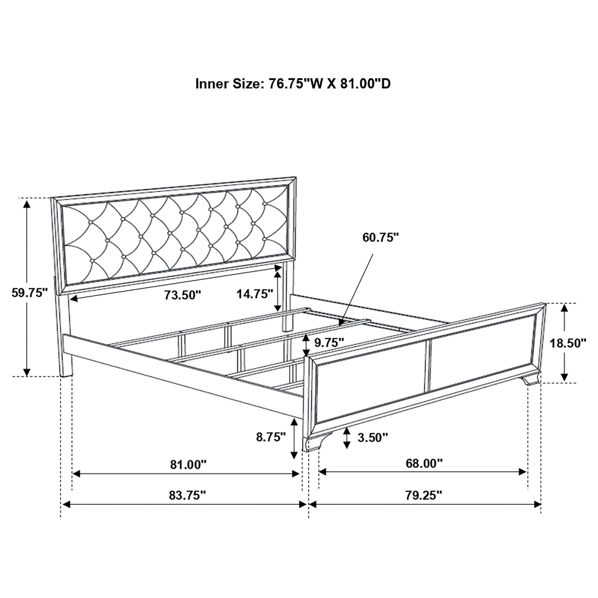 Q: What are the dimensions of the Coaster Home Furnishings Briana Queen Bed Frame?A: The Coaster Home Furnishings Briana Queen Bed Frame measures 88.25 inches in length and 64.25 inches in width, making it an ideal fit for queen-sized mattresses.