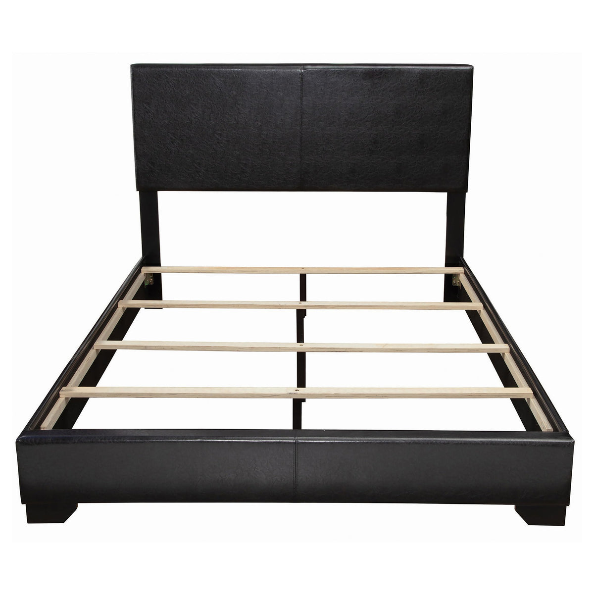 From the Conner collection comes this sleek, contemporary styled bed. It features straight lines and crisp edges for a look that's smooth and effortless. The bed is expertly upholstered in sumptuous leatherette for a handsome appeal. It features stout solid wood legs for long-lasting durability and styling. This bed imparts a mellow yet classy look to the bedroom.