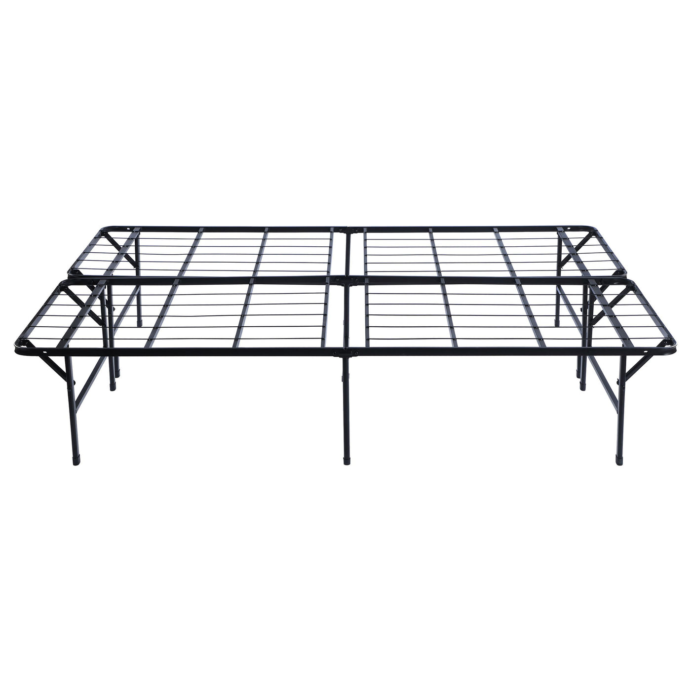 This simple transitional platform bed frame is both supportive and minimal. Easily storable and capable of folding, it can be pulled out when company visits. Its heavy gauge steel construction offers extra support, and has a black powder coated finish to protect against nicks while looking sleek and stylish. This bedframe can also be used as a standalone bed or to support a mattress to replace a box spring foundation. Included in this style are a variety of sizes to suit every mattress size.