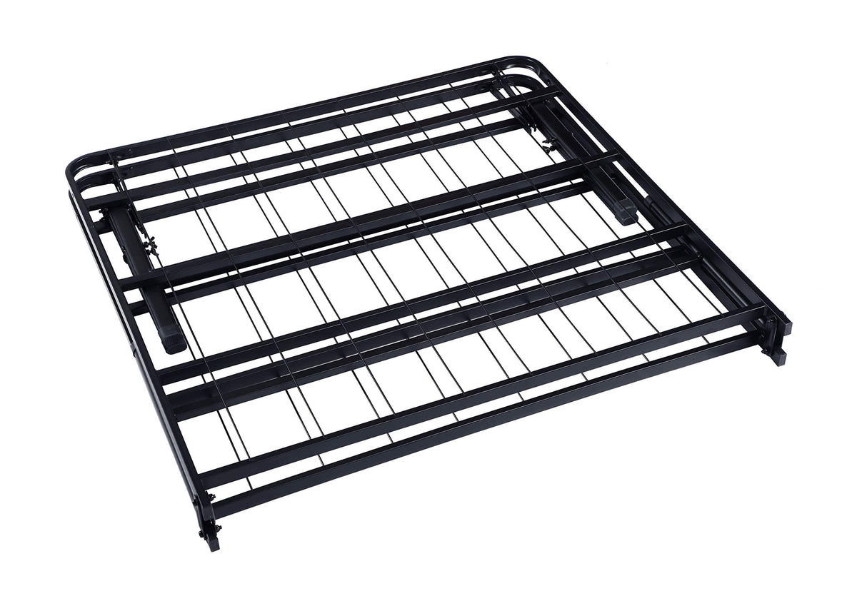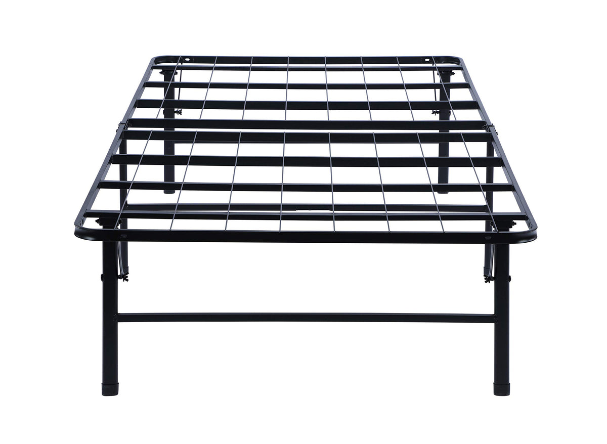 This simple transitional platform bed frame is both supportive and minimal. Easily storable and capable of folding, it can be pulled out when company visits. Its heavy gauge steel construction offers extra support, and has a black powder coated finish to protect against nicks while looking sleek and stylish. This bedframe can also be used as a standalone bed or to support a mattress to replace a box spring foundation. Included in this style are a variety of sizes to suit every mattress size.