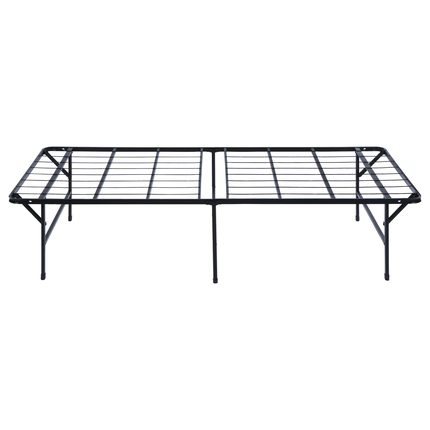 This simple transitional platform bed frame is both supportive and minimal. Easily storable and capable of folding, it can be pulled out when company visits. Its heavy gauge steel construction offers extra support, and has a black powder coated finish to protect against nicks while looking sleek and stylish. This bedframe can also be used as a standalone bed or to support a mattress to replace a box spring foundation. Included in this style are a variety of sizes to suit every mattress size.