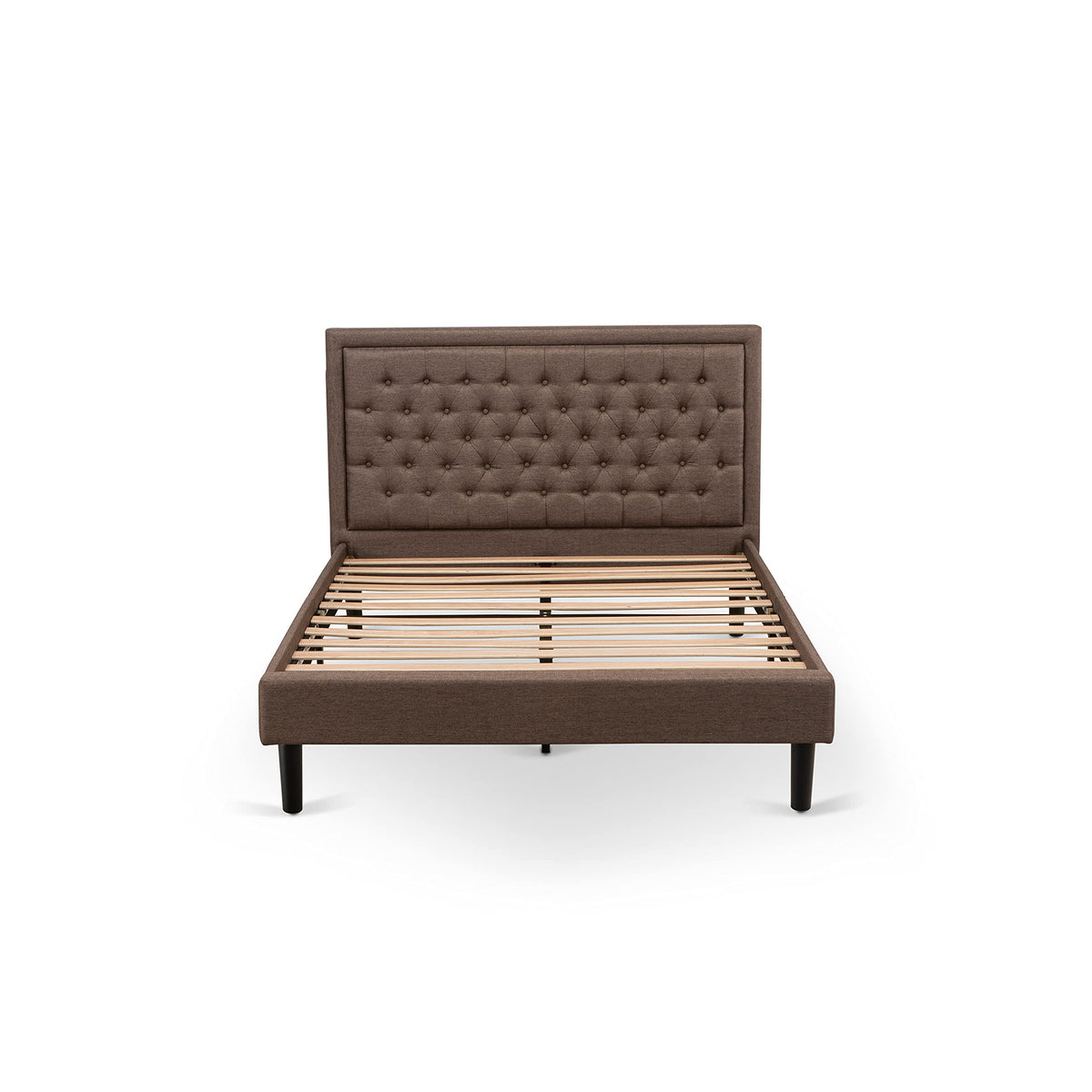 East West Furniture KDF-18-Q Platform Queen Bed Frame - Brown Linen Fabric Upholstered Bed Headboard with Button Tufted Trim Design - Black Legs