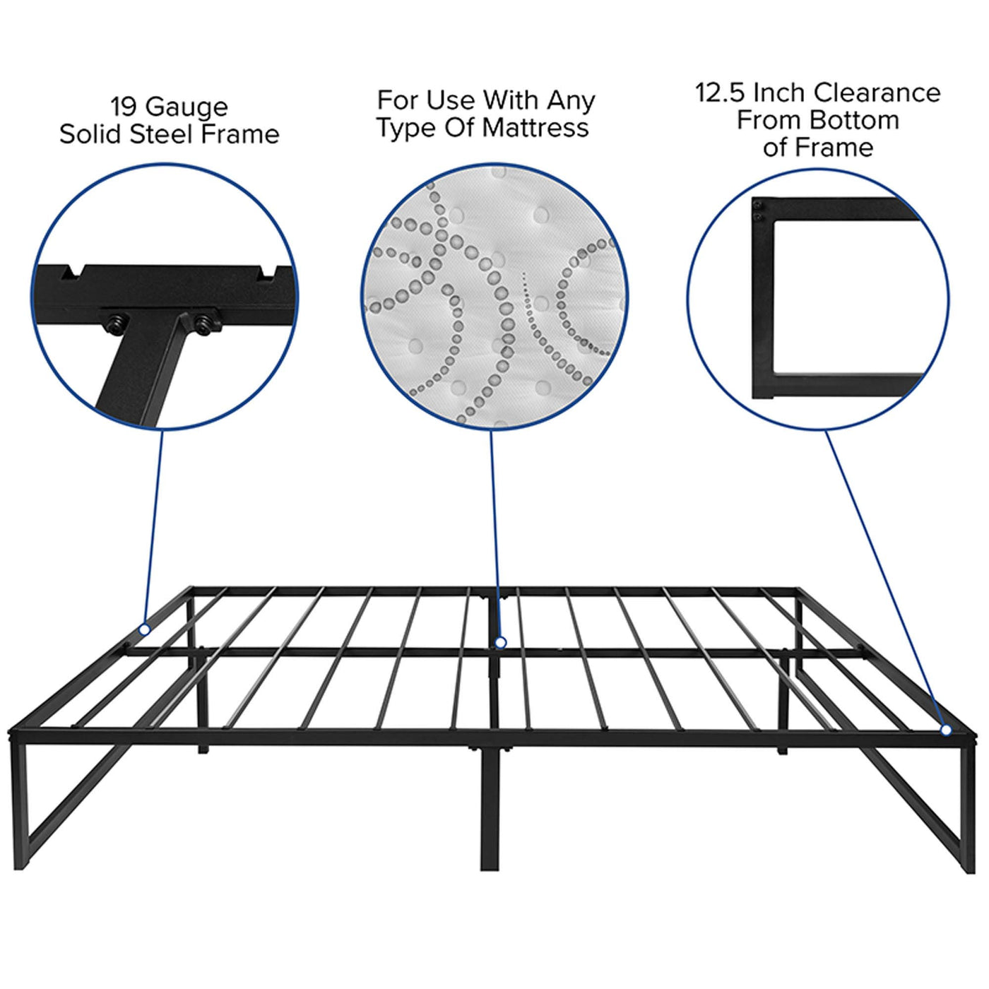 If you need a new bed set, but you don't want to go out shopping for furniture or hassle with getting it home from the store, just take the easy route and have everything delivered right to your door. This platform bed frame with mattress included has everything you need for a great nights sleep and you never have to leave home. Quality and convenience are essential for the modern lifestyle and this bed frame foundation with mattress set features a 14" freestanding metal platform bed frame offering 12.5 inches of clearance for storage and ease of cleaning. Constructed from 19 gauge solid steel with reinforced metal screw construction this frame will support up to 650 pounds. Solid steel slats hold the included 10" foam and pocket spring mattress without sagging and does not require a box spring. The lack of a headboard or footboard streamlines any sleep space and will lend vertical real estate to smaller bedrooms. Last, but definitely not least, this complete bed set bundle gives you the mattress of your dreams. This medium-firm mattress features individually wrapped pocket spring coils for exceptional support to alleviate pressure points and reduced motion transfer to help you stay asleep. The foam is CertiPUR-US Certified so it's free from heavy metals, phthalates, BPDE, formaldehyde and has reduced VOCs. Arriving compressed and boxed for ease of movement, this traditional mattress will fully expand with 48 to 72 hours. Give yourself the gift of better sleep and a new look for your bedroom with the touch of a button when you order this complete mattress and bed frame set.