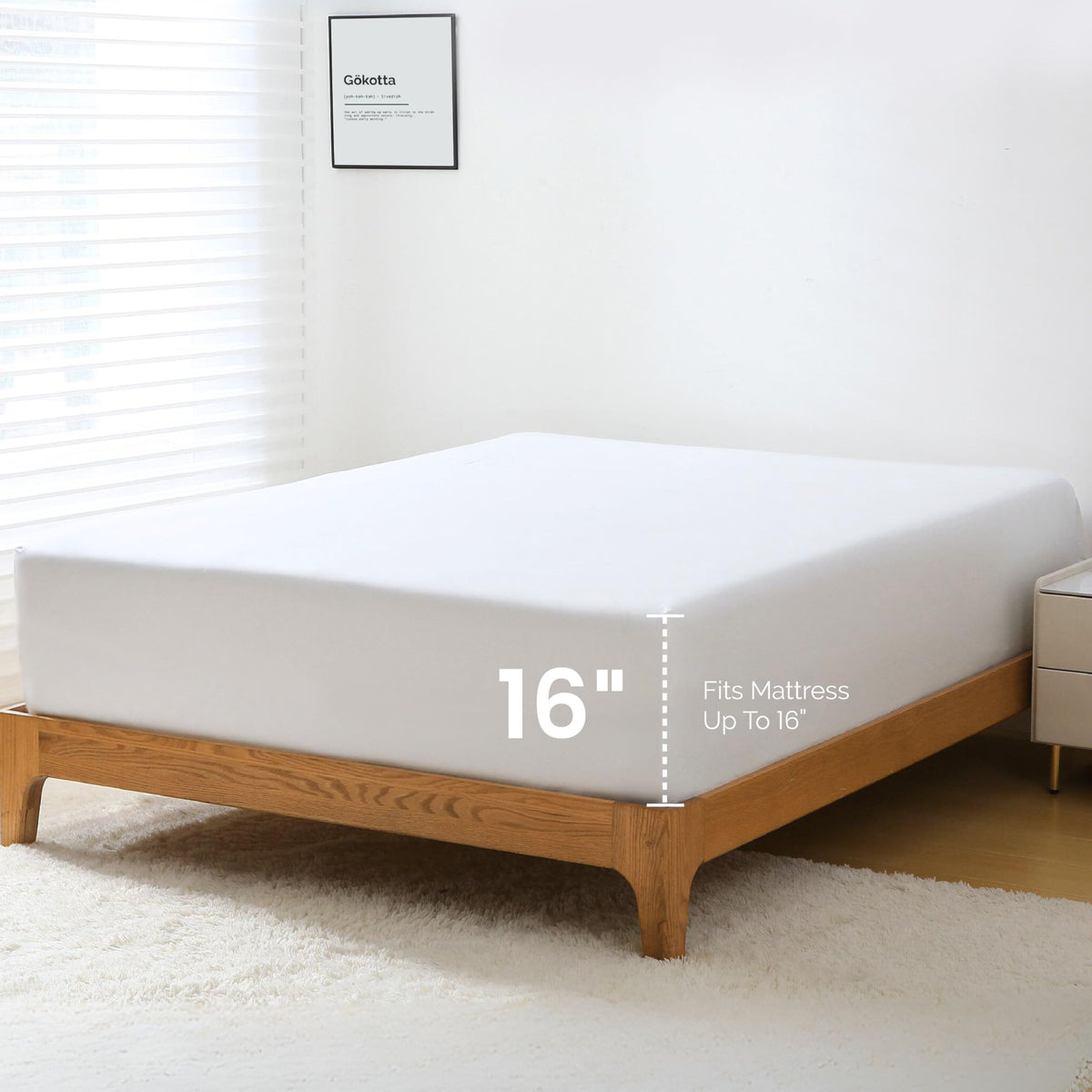 Gokotta Fitted Sheet Only - 16 Inch Pocket Bamboo Rayon Fitted Sheet, Super Soft And Cooling Bottom Sheet With 4 Elastic Corner