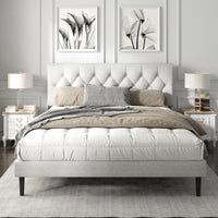 Premium Comfort: Enjoy Cozy & Inviting Soft Linen And Foam Upholstery For Ultimate Comfort | Classic Charm: Add Timeless Elegance To Your Bedroom With A Button Tufted Upholstered Headboard | Durability & Stability: Built With Thick Wood And Solid Alloy For Long-Lasting Performance And Reliable Support | Optimal Support: Wooden Slat System Ensures Even Weight Distribution, Prevents Sagging, And Prolongs Mattress Life | Easy Assembly: All Accessories Are Packed In The Headboard, And No Extra Tools Required, Enjoy A Hassle-Free Assembly Process