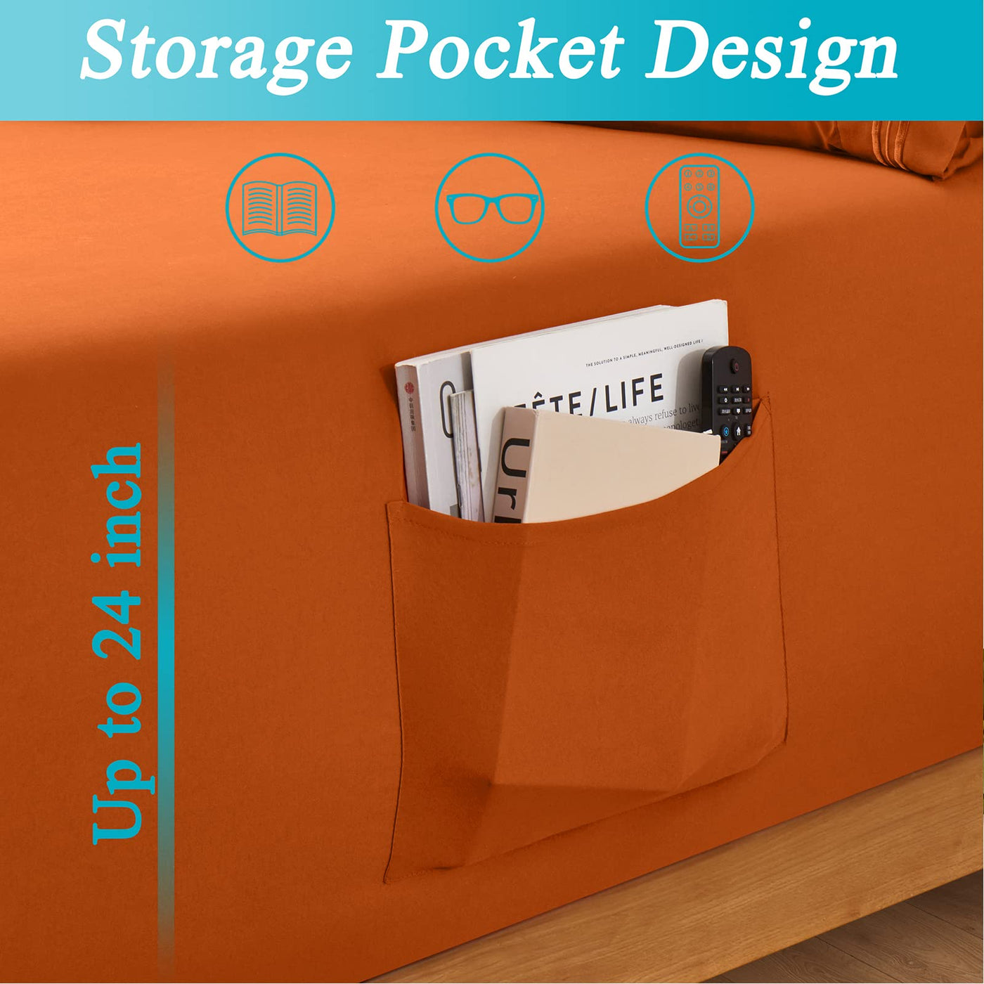 Horbaunal Extra Deep Pocket King Fitted Sheet Only - Fits Up To 24 Inch Mattress - Luxury 1800 Thread Count - Microfiber Burnt Orange Fitted Bed Sheet King Size About Horbaunal: Horbaunal, A Home Textile Brand, Aims To Produce And Sale Premium Quality Bedding And Textile Product At A Affordable Price. Our Mission Is To Help Our Customers Have A Wonderful Sleeping Experience And Create A Warm Home. Feature: Super Soft - Made Of High Quality 1800 Thread Count Microfiber, Soft And Breathable, Anti Pilling, Fade And Wrinkle Resistant. Perfect Fit - Design For A Snug Fit, 21 Inch Deep Pocket And Elastic Band Around The Fitted Sheet Can Hold Your Mattress Firmly. Easy Care - Machine Washable In Cold Water And Tumble Dry Low. The Sheet Set Will Be Smoother And More Comfortable If You Dry It Flat. Design - Storage Pocket On The Side Makes It Storage Easily Small Objects. Pure Color Bed Sheet Set Blends Easily With Any Decor, Everthing Is Just Right. Specification: Material: Microfiber Color: Burnt Orange Package Content: 1 X Fitted Sheet King Size Size For Your Choice: Twin - 75'' X 40'' + 21'' Full - 75'' X 54'' + 21'' Queen - 80'' X 60'' + 21'' King - 80'' X 78'' + 21'' Your Satisfaction Is Our Primary Goal. We Are Devoted To Produce High Quality Bedding Set For Great Sleeping. Don'T Hesitate, Just Try Our Product And You Will Fall In Love It.