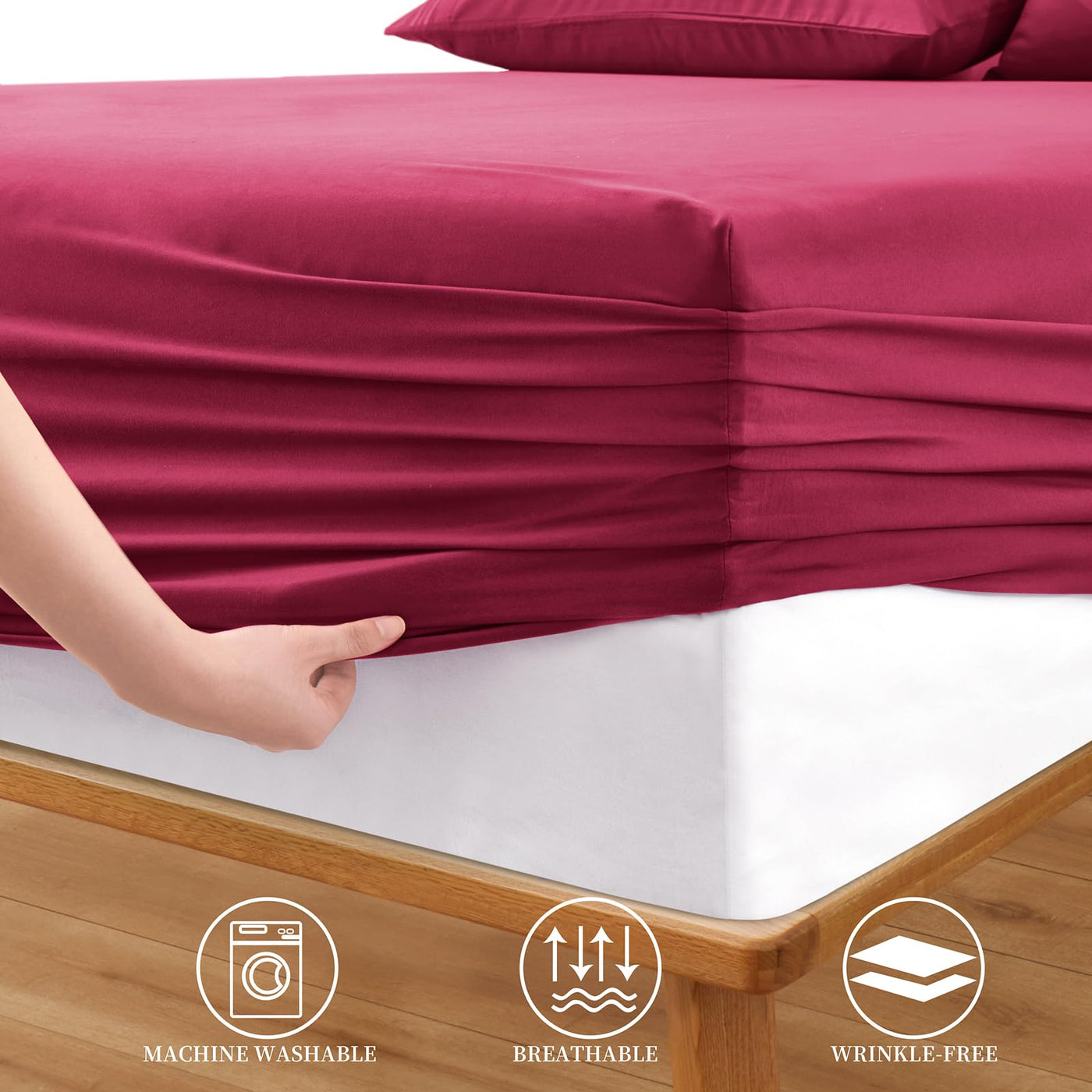 Horbaunal Extra Deep Pocket Queen Fitted Sheet Only - Fits Up To 24 Inch Mattress - Luxury 1800 Thread Count - Microfiber Burgun