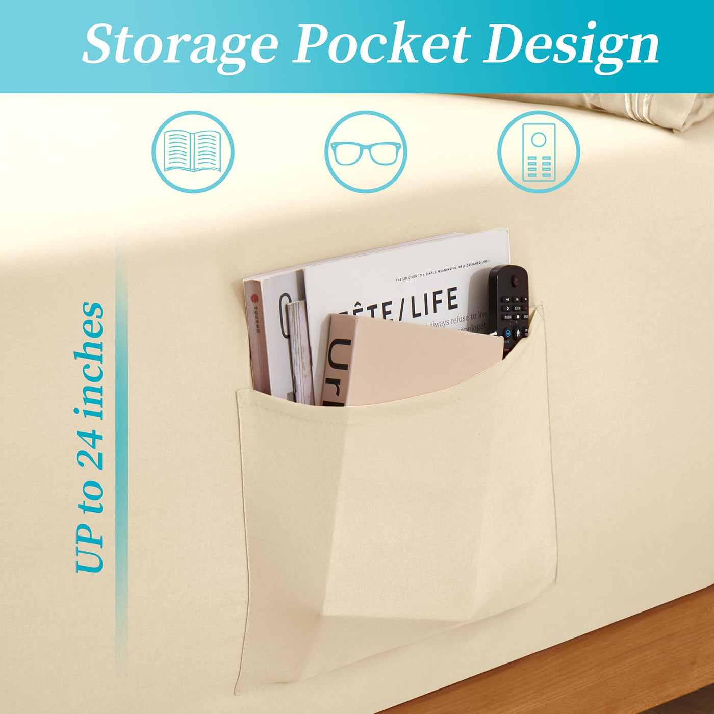 Horbaunal Extra Deep Pocket Queen Fitted Sheet Only - Fits Up To 24 Inch Mattress - Luxury 1800 Thread Count - Microfiber Cream Fitted Bed Sheet Queen Size About Horbaunal: Horbaunal, A Home Textile Brand, Aims To Produce And Sale Premium Quality Bedding And Textile Product At A Affordable Price. Our Mission Is To Help Our Customers Have A Wonderful Sleeping Experience And Create A Warm Home. Feature: Super Soft - Made Of High Quality 1800 Thread Count Microfiber, Soft And Breathable, Anti Pilling, Fade And Wrinkle Resistant. Perfect Fit - Design For A Snug Fit, 21 Inch Deep Pocket And Elastic Band Around The Fitted Sheet Can Hold Your Mattress Firmly. Easy Care - Machine Washable In Cold Water And Tumble Dry Low. The Sheet Set Will Be Smoother And More Comfortable If You Dry It Flat. Design - Storage Pocket On The Side Makes It Storage Easily Small Objects. Pure Color Bed Sheet Set Blends Easily With Any Decor, Everthing Is Just Right. Specification: Material: Microfiber Color: Cream Package Content: 1 X Fitted Sheet Queen Size Size For Your Choice: Twin - 75'' X 40'' + 21'' Full - 75'' X 54'' + 21'' Queen - 80'' X 60'' + 21'' King - 80'' X 78'' + 21'' Cal King - 84'' X 72'' + 21'' Your Satisfaction Is Our Primary Goal. We Are Devoted To Produce High Quality Bedding Set For Great Sleeping. Don'T Hesitate, Just Try Our Product And You Will Fall In Love It.