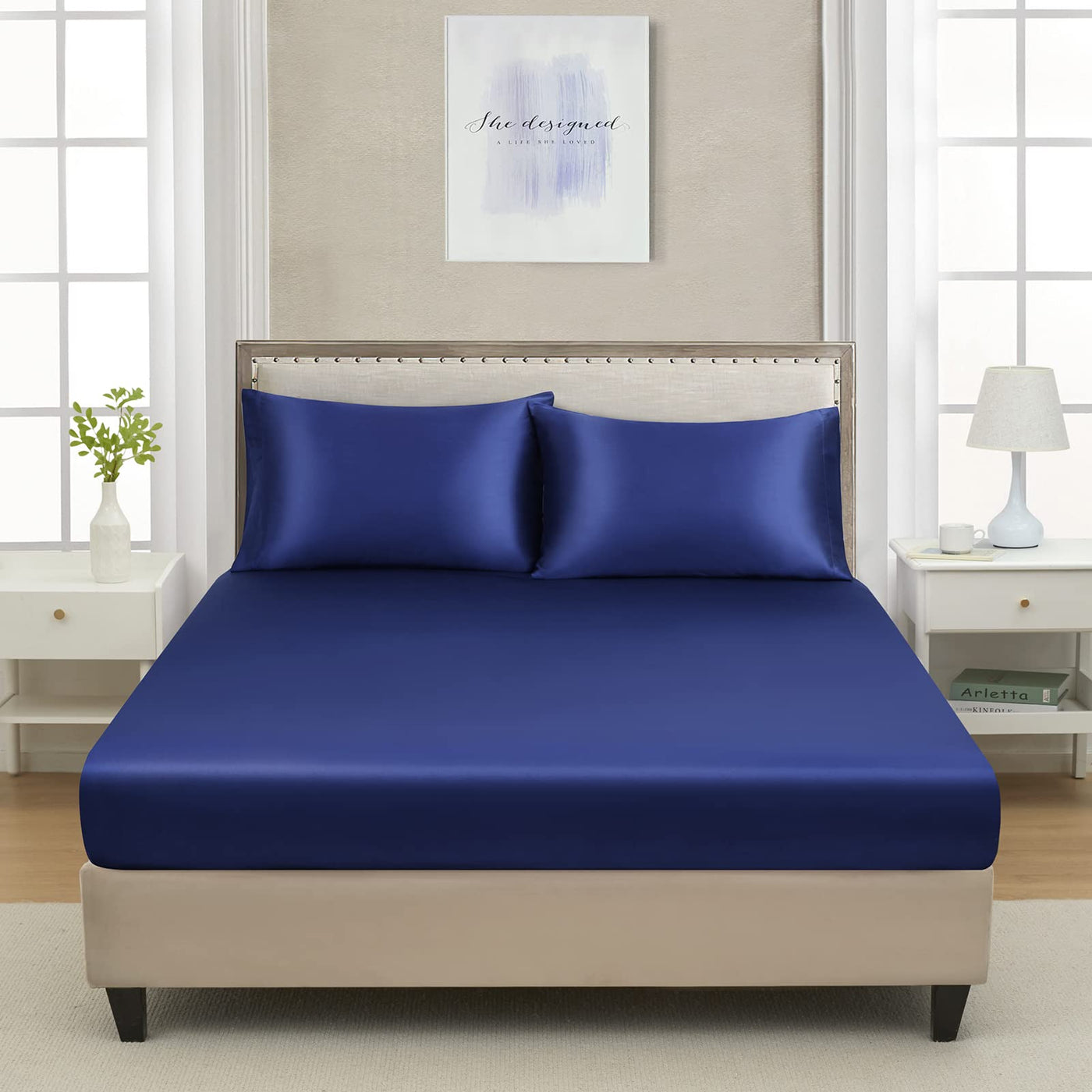 King Silk Satin Fitted Sheet, Soft Deep Pocket Single Bottom Bed Sheets Sold Separately, Wrinkle Free, Non- Fading, Breathable,