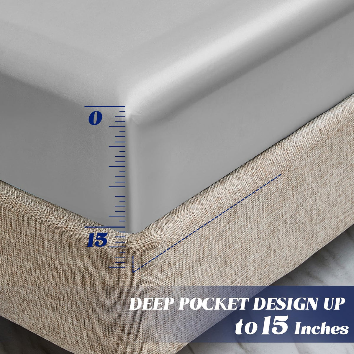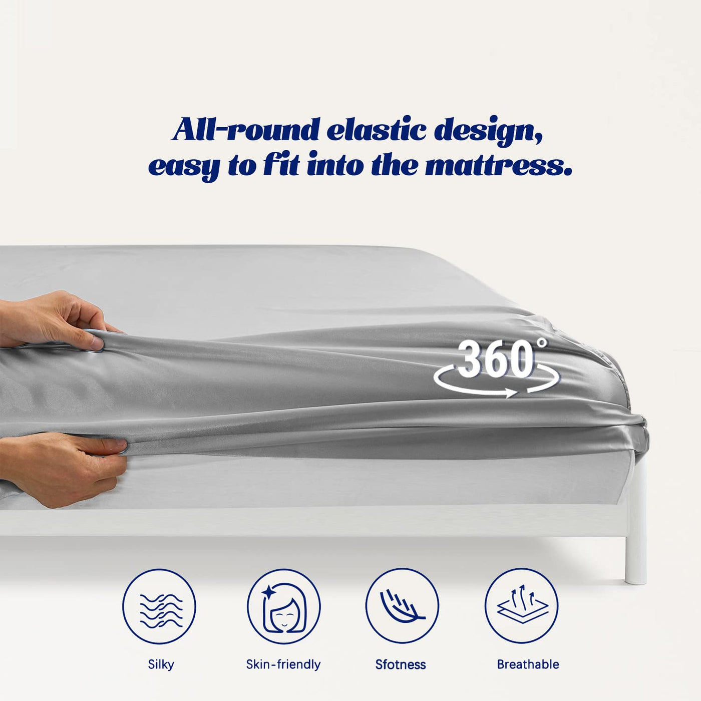 Mr&Hm Satin Fitted Sheet King Size, Silky Bottom Sheet With Elastic Corner Straps, Deep Pocket Up To 15 Inch, No More Slipping O
