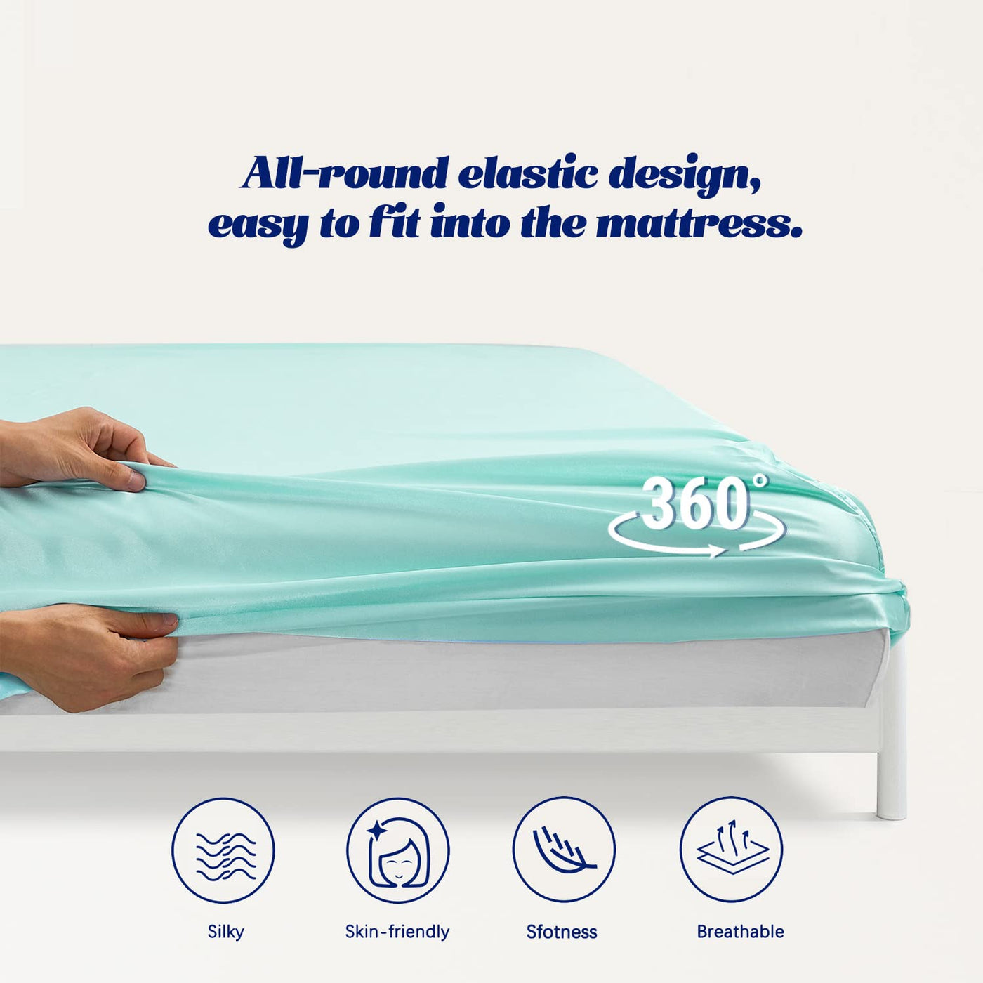 Mr&Hm Satin Fitted Sheet Queen Size, Silky Bottom Sheet With Elastic Corner Straps, Deep Pocket Up To 15 Inch, No More Slipping