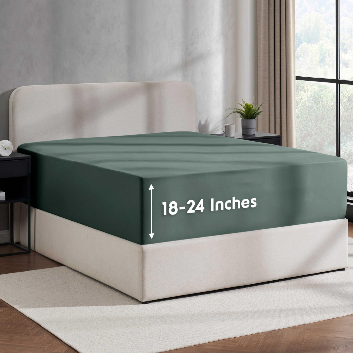 Nestl Forest Green California King Fitted Sheet - Extra Deep Pocket, 1800 Microfiber, Ultra Soft, Fits Up To 24 Inch Mattress