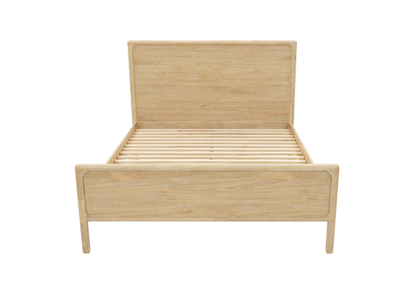 Organic Elements are emphasized with curved edges and a natural finish. Blending clean straight lines and soft curves, the Hansville bedroom series showcases natural veneer paneling and a whitewashed wood finish to complete its design. The Queen-size bedframe and legs are made of solid wood. The collection also includes a nightstand, dresser and sideboard that are sold separately. Easy assembly. Available in Natural Whitewash.