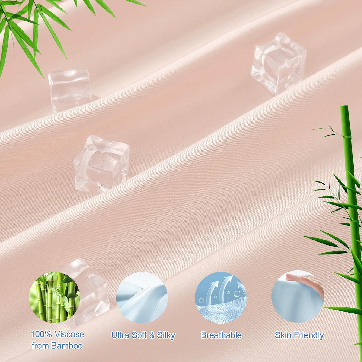 Phf 100% Rayon Derived From Bamboo Cooling Fitted Sheet Queen For Hot Sleeper,16'' Deep Pocket,2.5Cm Wider Strong Elastic Easy Fit ,Breathable Silky Smooth Soft,60''X 80'',Peach Blush,No Pillowcases