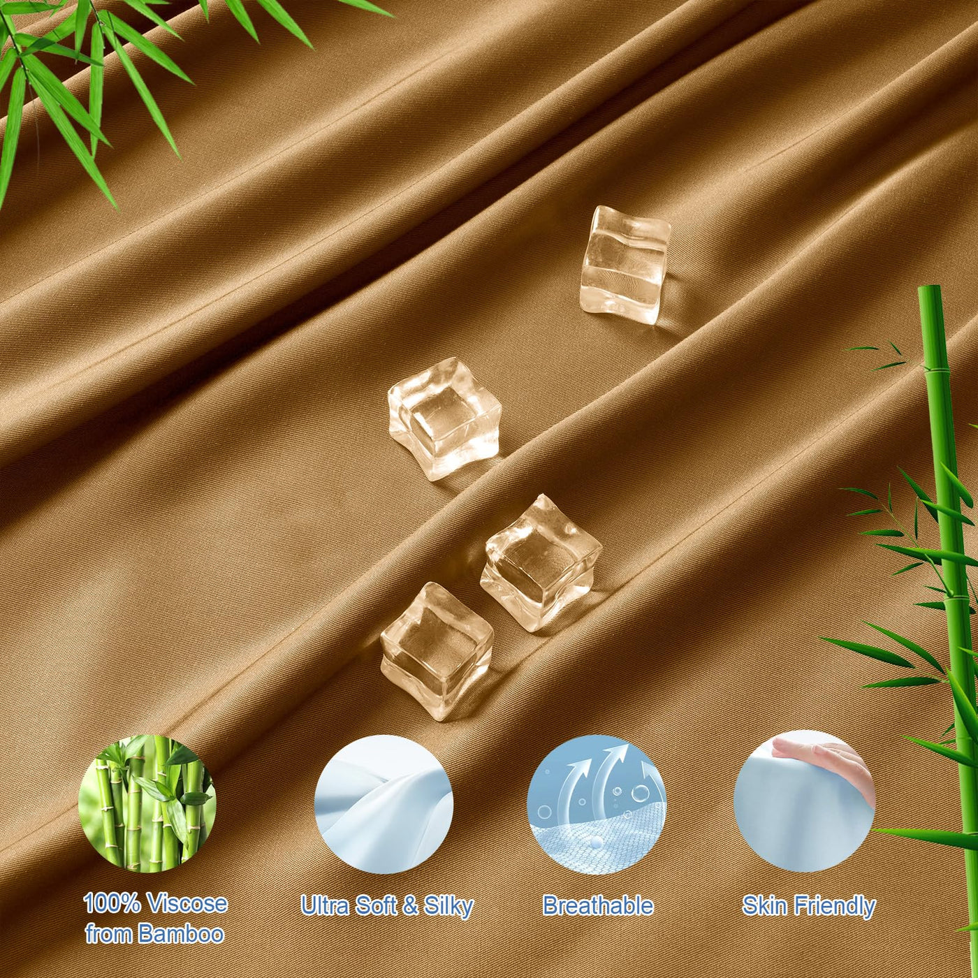 Phf 100% Rayon Derived From Bamboo Cooling Fitted Sheet Twin Size For Hot Sleeper,16'' Deep Pocket,2.5Cm Wider Strong Elastic Easy Fit ,Breathable Silky Smooth Soft,39''X 75'',Camel,No Pillowcases