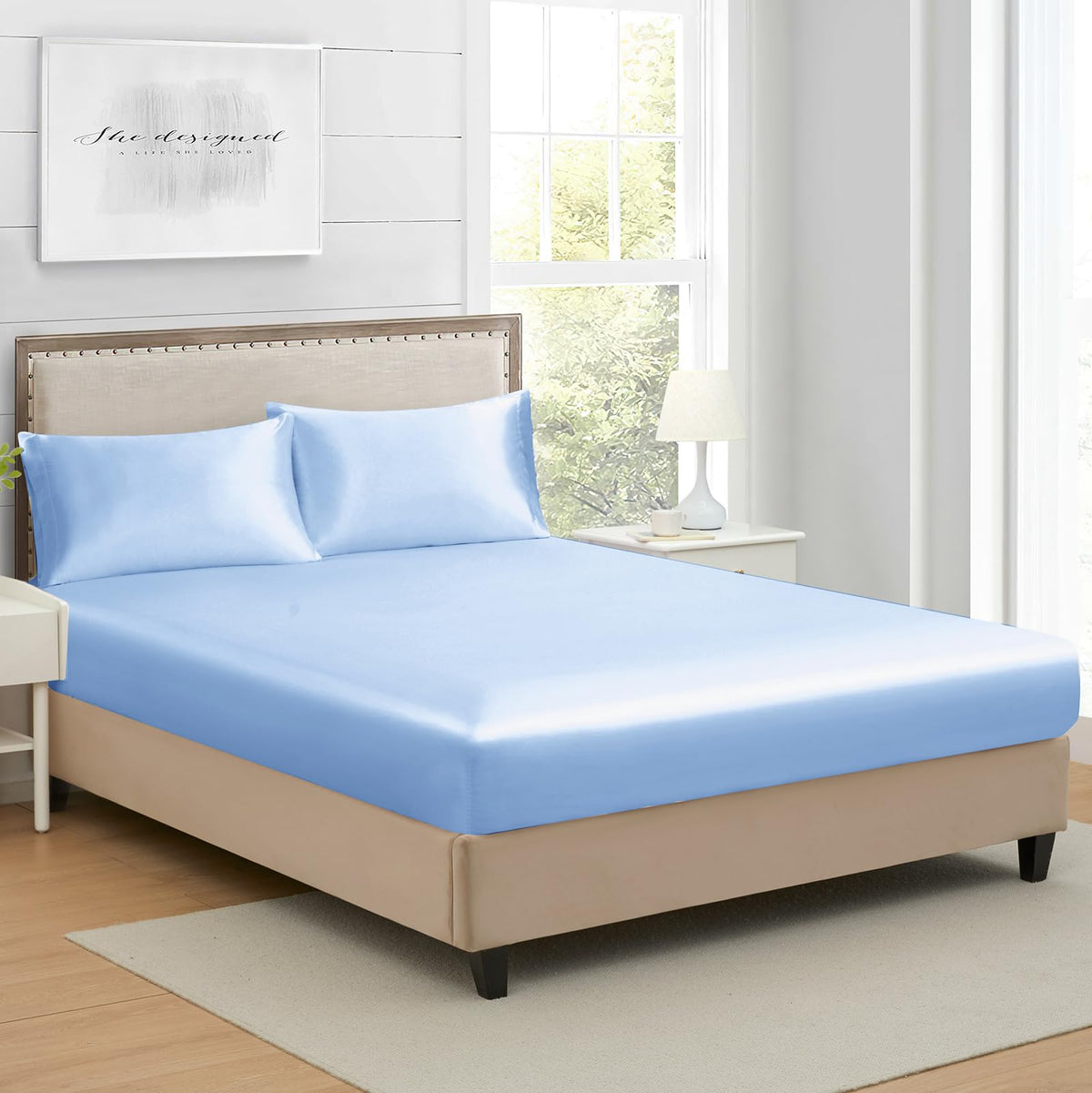 Queen Silk Satin Fitted Sheet, Soft Deep Pocket Single Bottom Bed Sheets Sold Separately, Wrinkle Free, Non- Fading, Breathable,