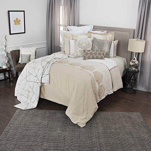 Rizzy Home | BT4468 | Duvet | 98"x98" Brown/Neutral/Metallic Solid With Floral Motif