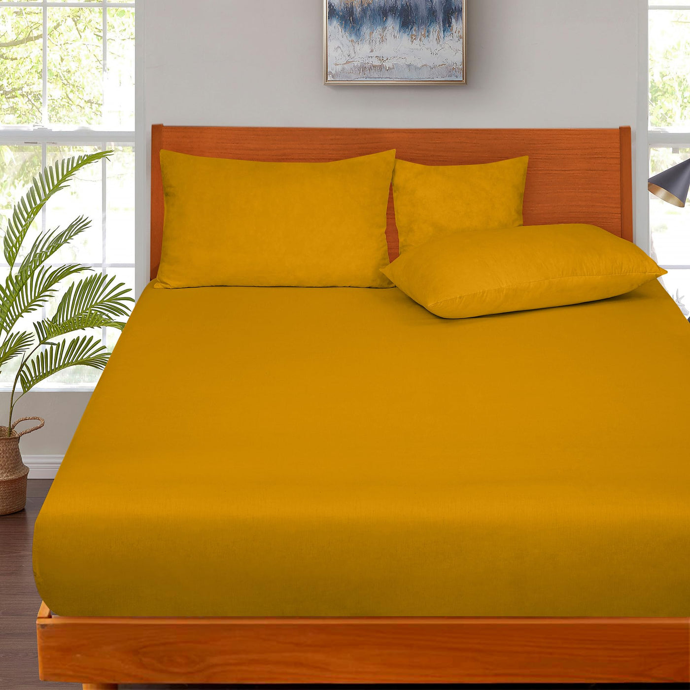 Royale Linens 300 Thread Count 100% Long Staple Combed Cotton Fitted Sheet - Super Soft Deep Pocket Bottom Sheet - Yellow Fitted