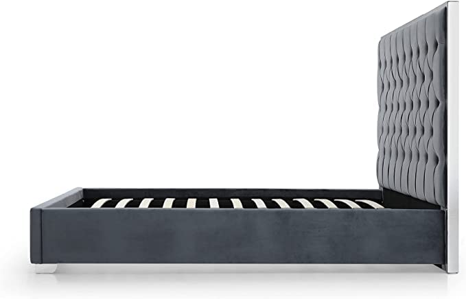Woodpeckers Furniture And Mattress Sophia Velvet King Bed with Silver Metal Frame (Grey)