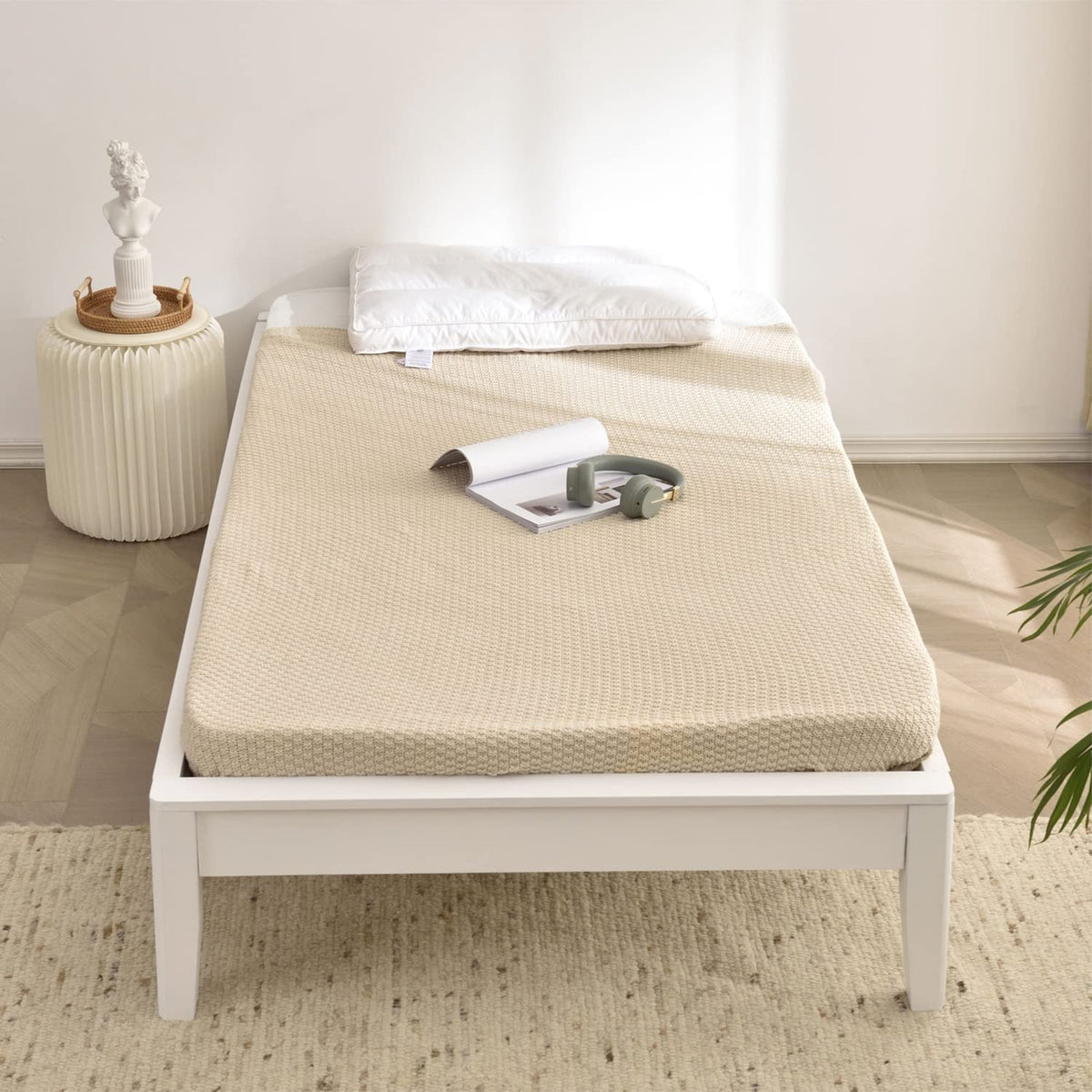 Woodpeckers Furniture And Mattress Stella Solid Pine Wood Platform Bed Frame (White, Twin)