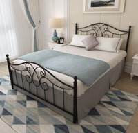 Yalaxon Vintage Sturdy Metal Bed Frame With Headboard And Footboard Basic Bed Frame No Box Spring (Queen, Black)