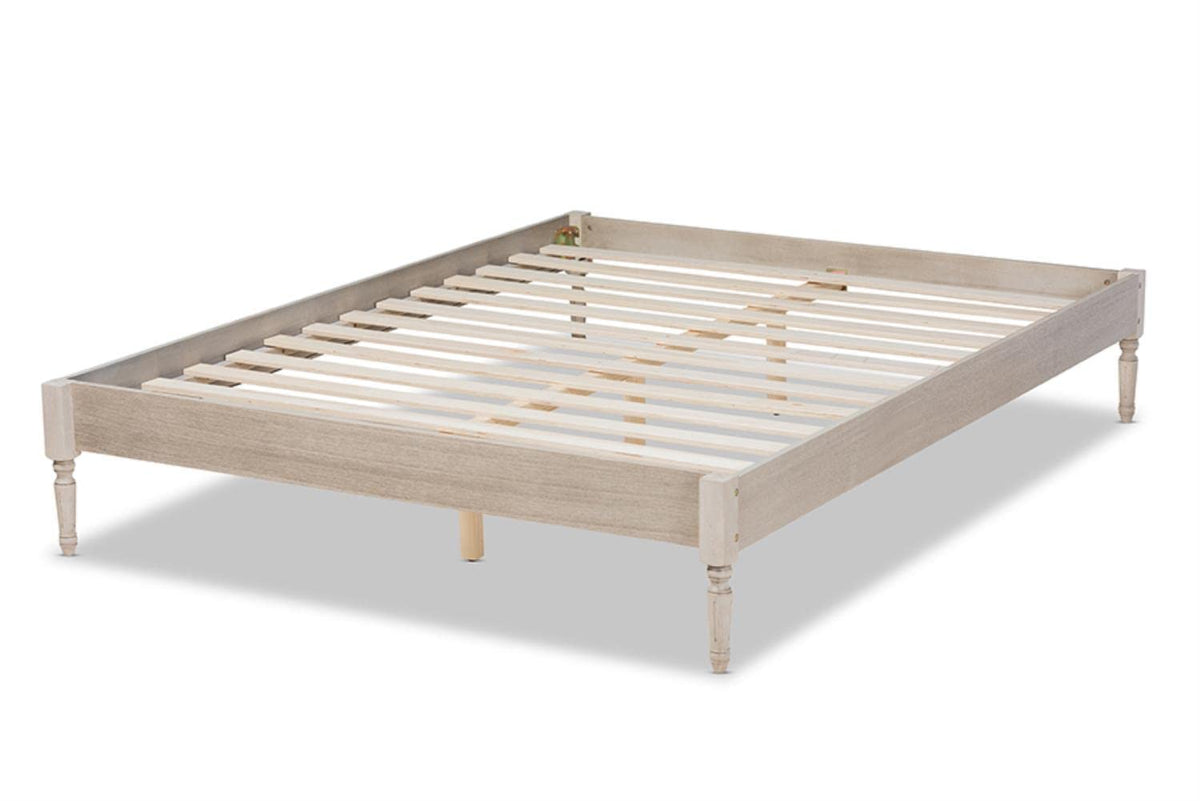 Baxton Studio Colette French Bohemian Antique White Oak Finished Wood Queen Size Platform Bed Frame