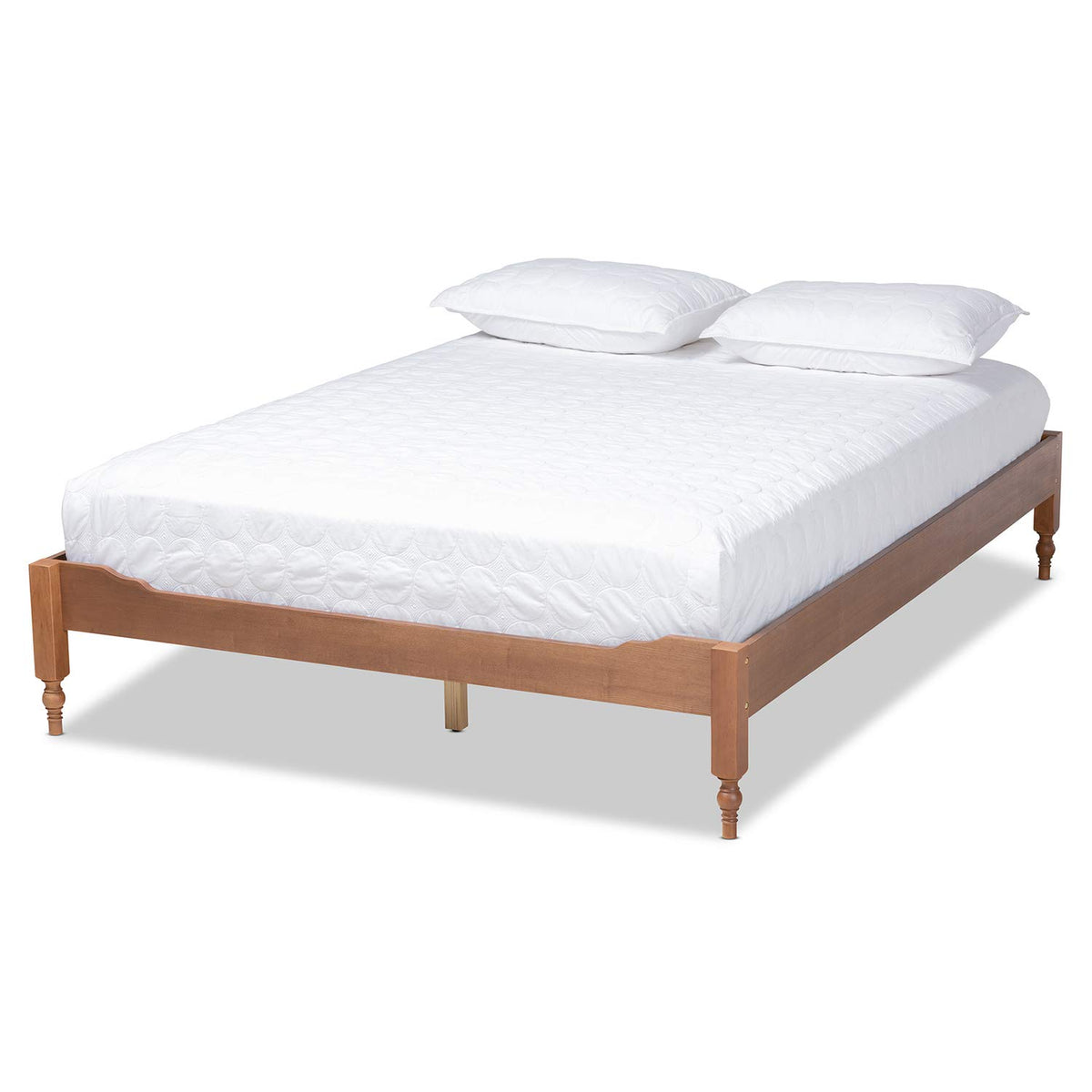 Baxton Studio Laure French Bohemian Ash Walnut Finished Wood King Size Platform Bed Frame-Beauty and comfort abound in the Laure bed frame. Crafted from wood, the Laure features an ash walnut finish that provides a warm, inviting feel. Its low platform lends a casual look, while stepped detailing and turned legs convey a timeless elegance. Add some pillows and a plush duvet to create a cozy retreat. This bed includes wood slats, which eliminate the need for a box spring. The Laure bed frame is made in Malaysia and requires assembly.
