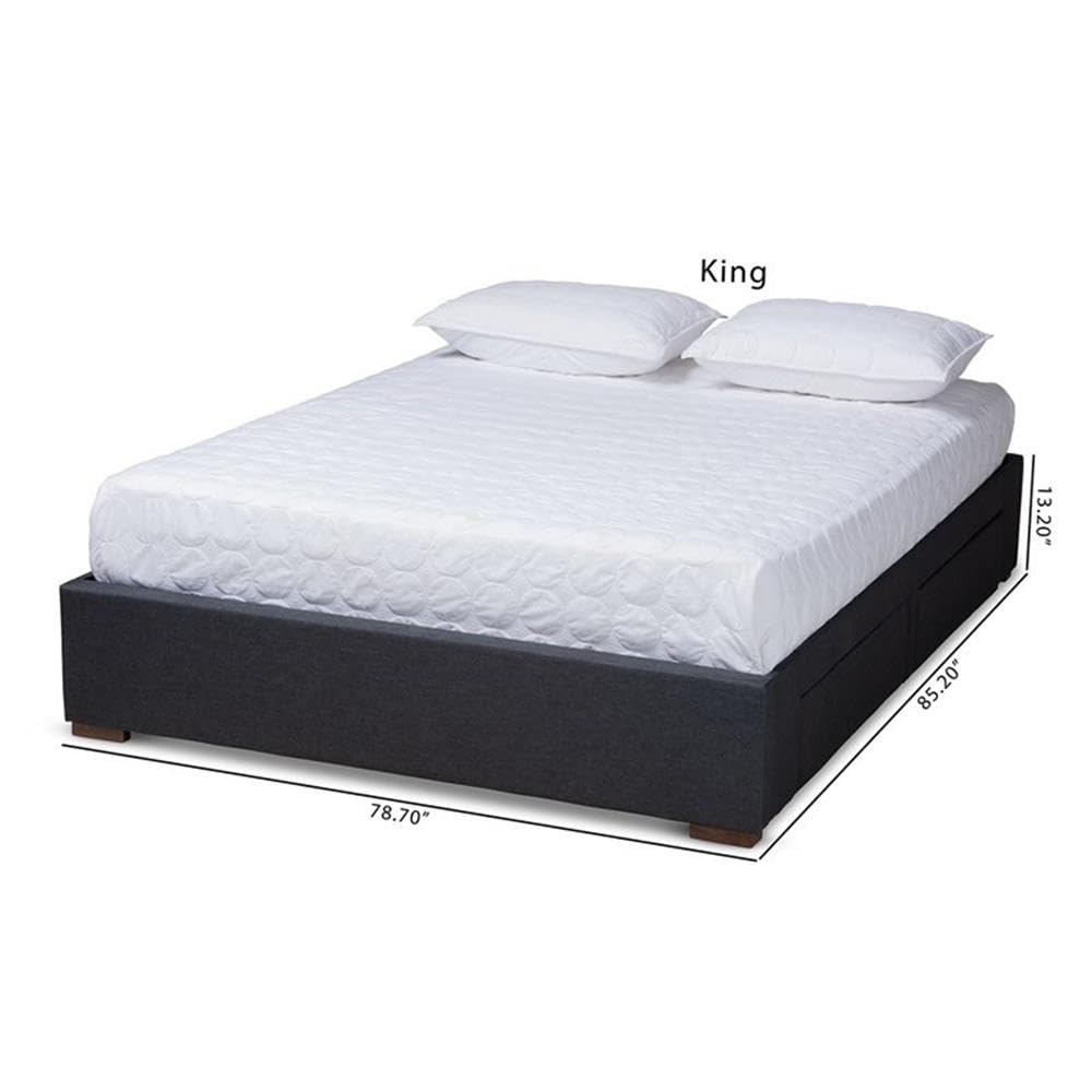 Baxton Studio Leni Modern and Contemporary Dark Grey Fabric Upholstered 4-Drawer King Size Platform Storage Bed Frame