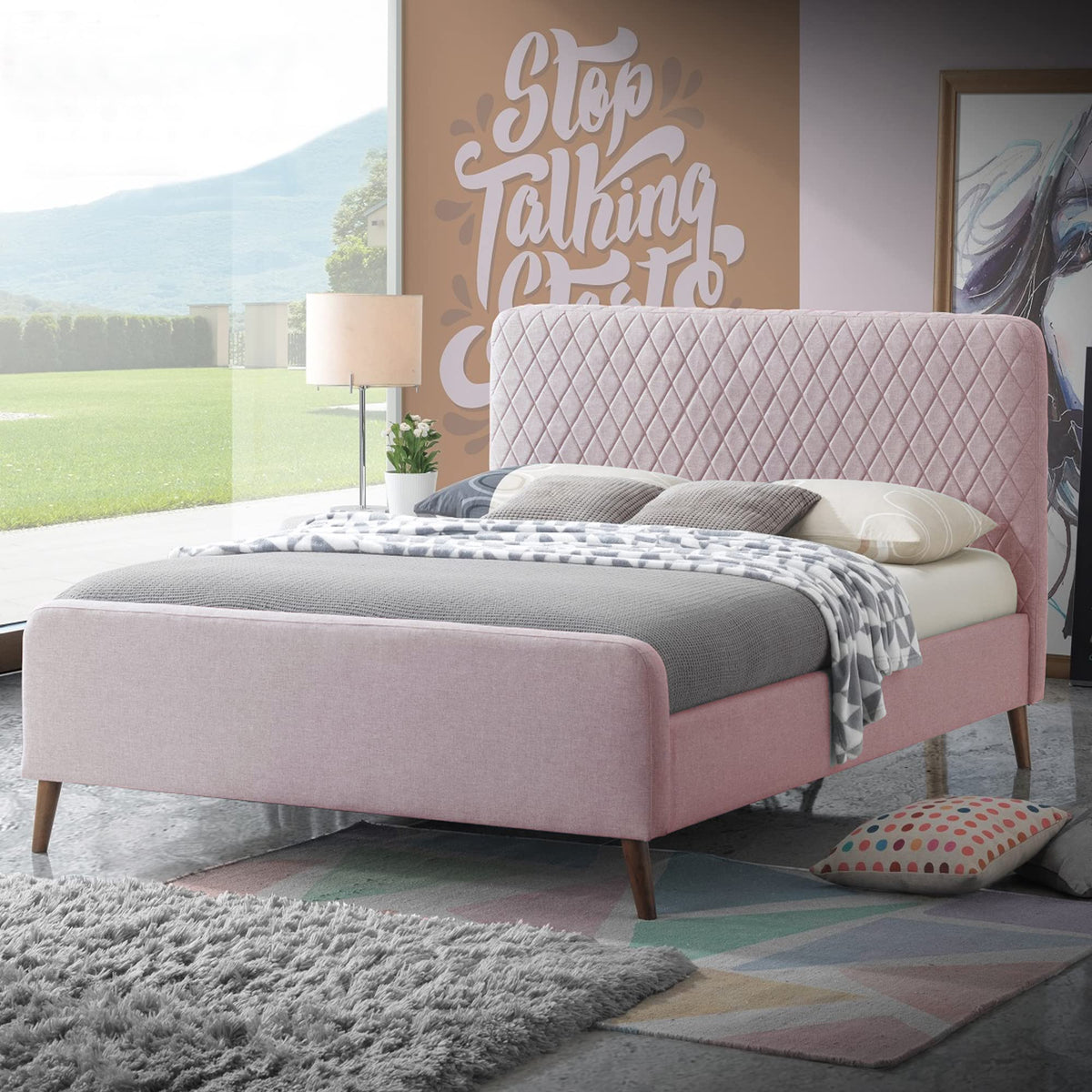 Better Home Products Roza Velvet Upholstered Queen Bed with Headboard Light Pink