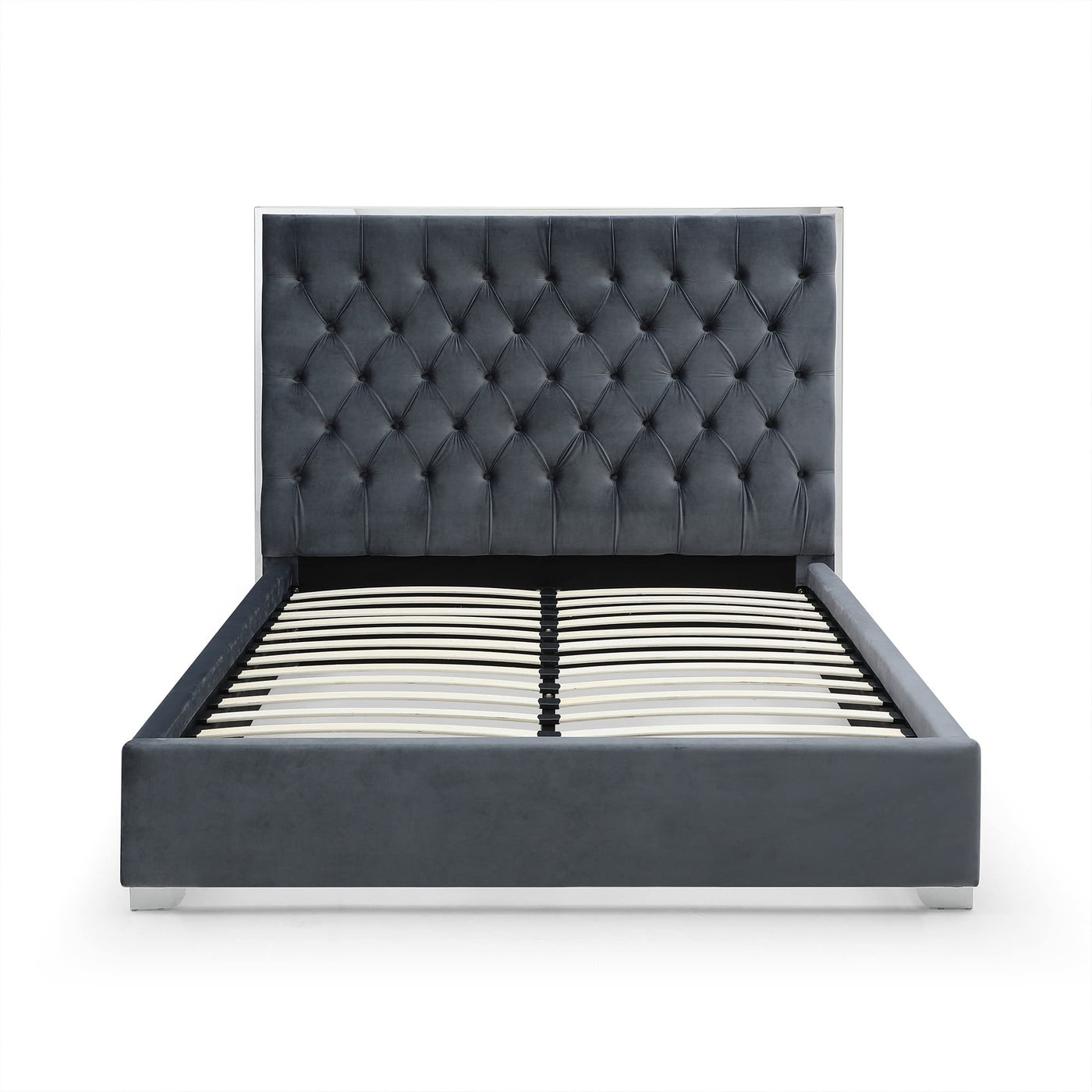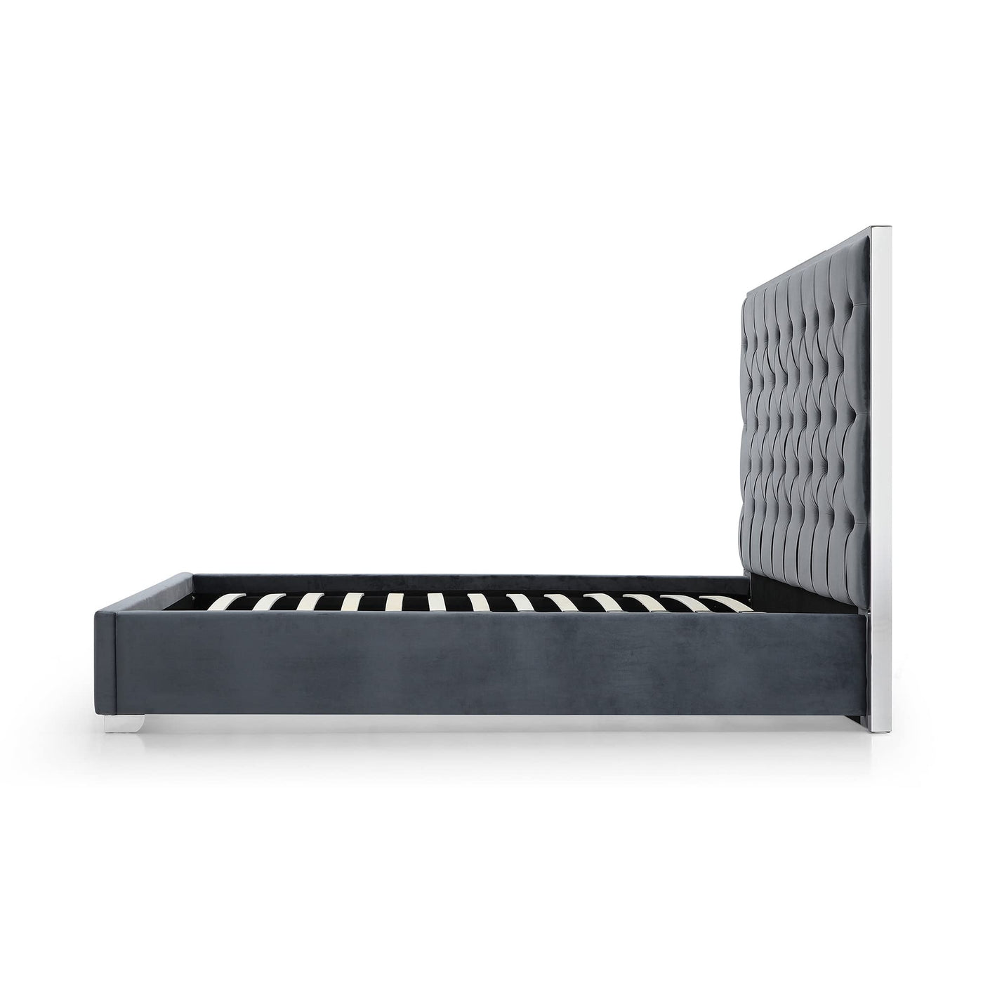 Better Home Products Sophia Velvet King Bed With Silver Metal Frame In Gray