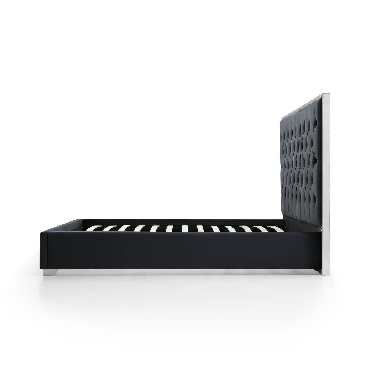 Better Home Products Sophia Velvet Queen Bed With Silver Metal Frame In Black