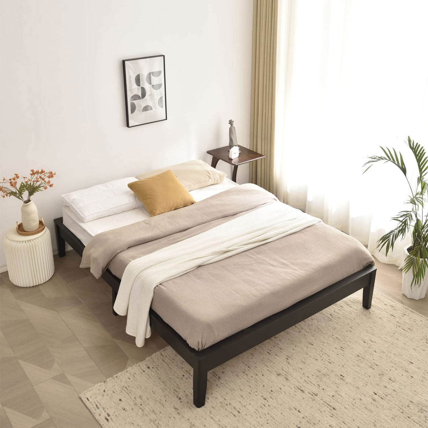 Better Home Products Stella Solid Pine Wood Full Platform Bed Frame In Black