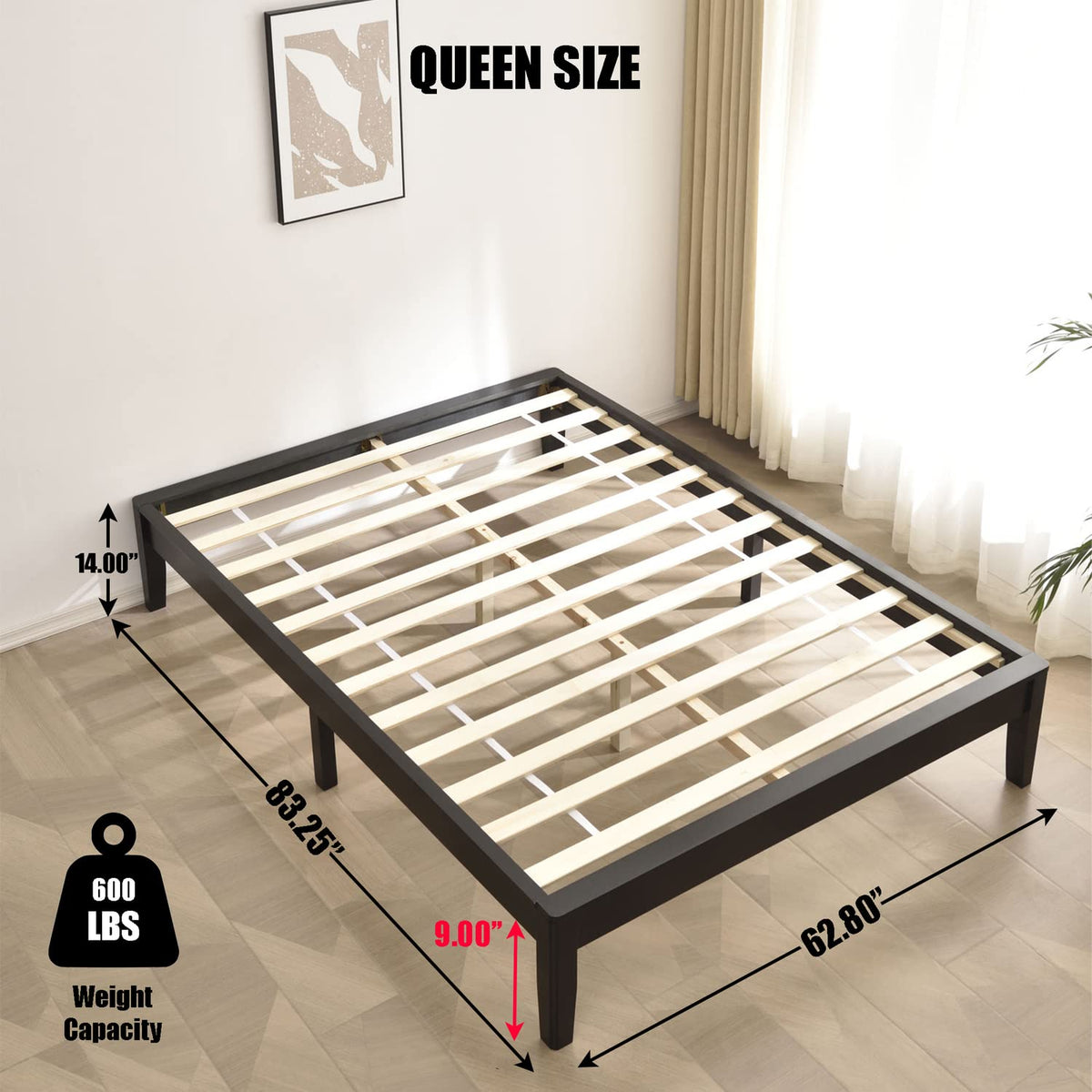 Better Home Products Stella Solid Pine Wood Queen Platform Bed Frame in Black