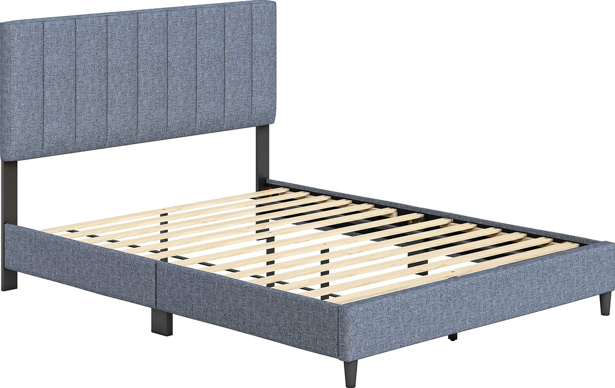 Boyd Sleep Leah Upholstered Vertical Tufted Platform Bed Frame Mattress Foundation With Headboard And Strong Wood Slat Supports: Linen, Blue, Full (Lhbu970Db)